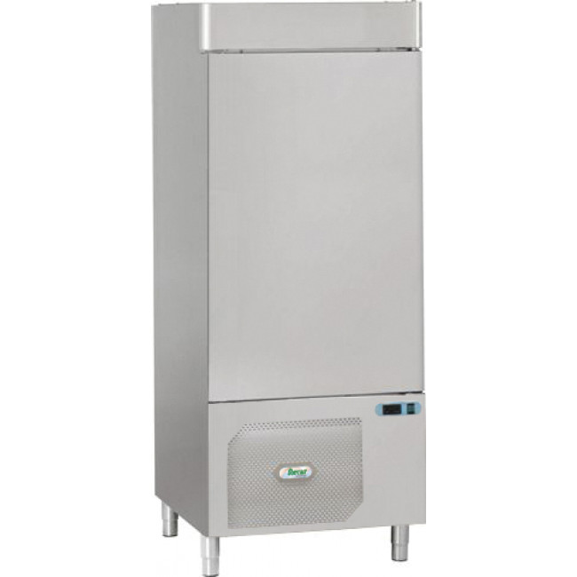 Struttura monoblocco in acciaio inox 18/10 AISI 304, finitura esterna satinata "Scotch Brite", spessore isolamento 60mm con schiuma alta densità 42 kg/m3 piedini diametro 20 regolabili H70/100, cella interna con angoli arrotondati per una migliore pulizia. Guide adatte per contenere bacinelle GN1/1 o teglie 600X400, porta reversibile con guarnizione magnetica asportabile, sonda per misurazione della temperatura al cuore del prodotto inclusa, microporta magnetico per blocco ventilatore evaporatore.