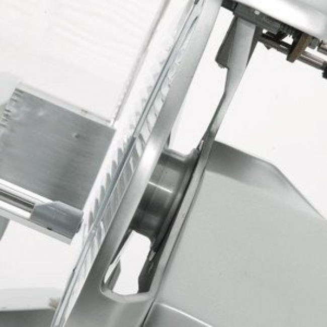 Fusione in lega di alluminio anodizzato e ampio spazio tra motore e lama per un’agevole pulizia con motore ventilato. Lama forgiata e temprata a forte spessore con scorrimento carrello su boccole autolubrificanti e perni lappati.