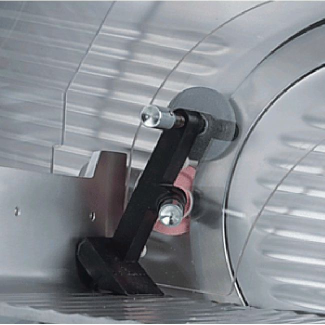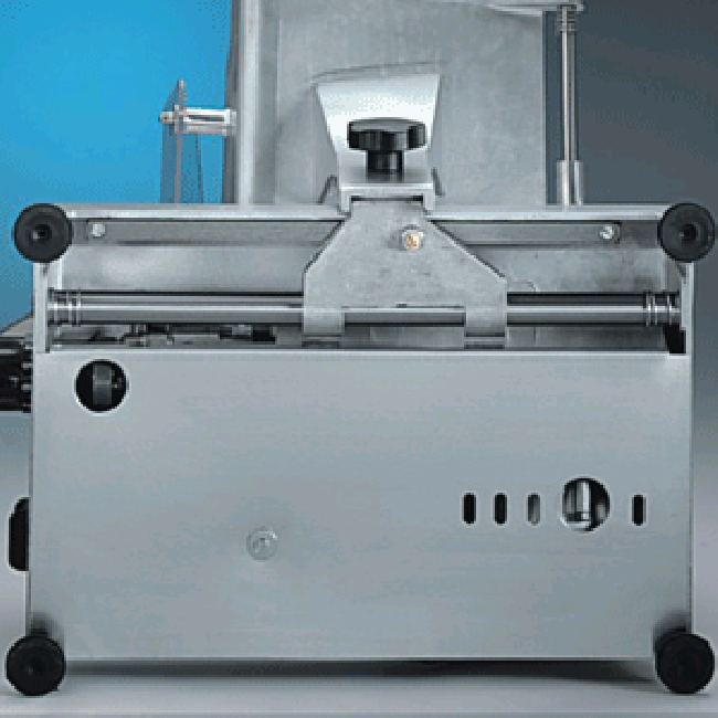 Fusione in lega di alluminio anodizzato e basamento piatto per una facile pulizia con robusto e silenzioso motore asincrono. Trasmissione con robusta cinghia poliV e lama forgiata e temprata a forte spessore. Scorrimento carrello su boccole autolubrificanti. con affilatoio incorporato in fusione con doppio smeriglio di serie dal modello 220 A.I. in su.