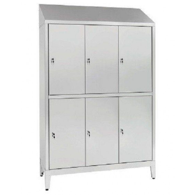 Armadi spogliatoio a 6 posti con tetto inclinato a 6 ante sovrapposte.