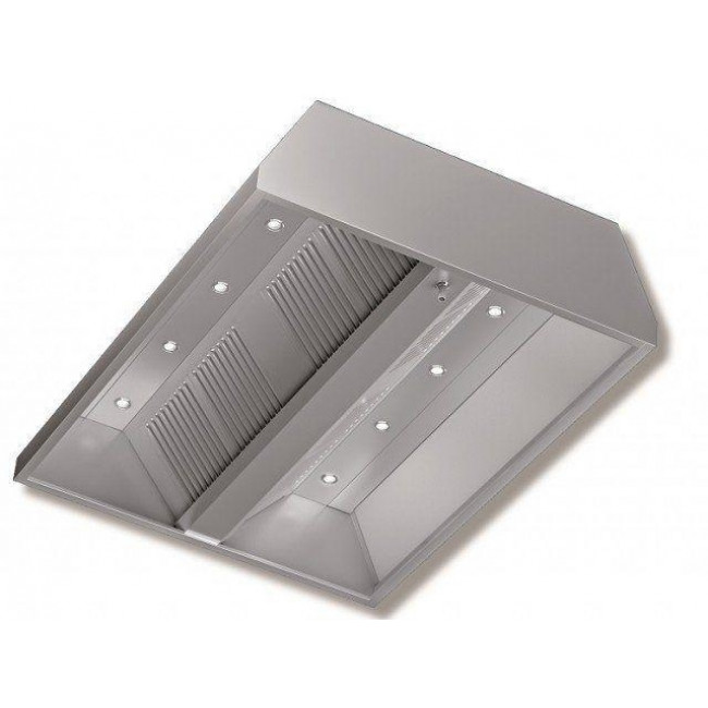 Cappa centrale realizzata in acciaio inox aisi 430 satinata scotch-brite puntata elettronicamente