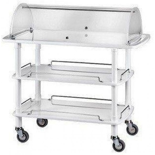 Carrello di servizio in legno Bianco lucido con cupola in plexiglas Modello CLC2013B Tre piani