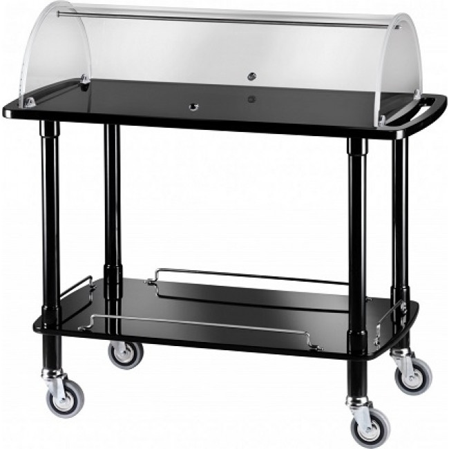 Carrello di servizio in legno Lucido Nero con cupola in plexiglas Modello CLC2012N due piani