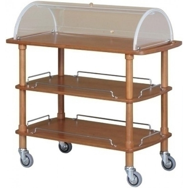 Carrello per dolci, formaggi e antipasti in legno cupola in PLX semicircolare con coperchi rientranti.