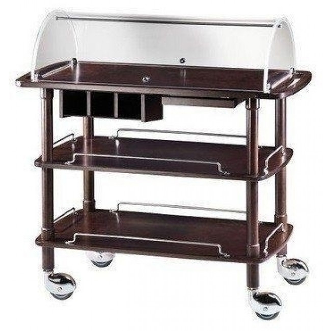 Carrello di servizio in legno Wengè con cupola in plexiglas Modello CLC2013W Tre piani