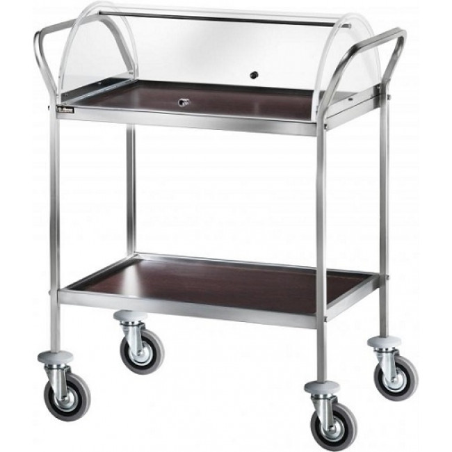 Carrello di servizio Modello CA1154W per dolci, formaggi e antipasti. Acciaio e nobilitato Wengè 2 piani