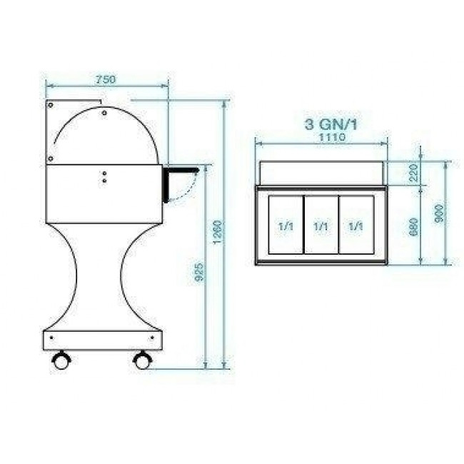 - Carrello ESPOSITORE CALDO BAGNOMARIA.