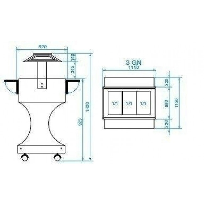 - Capacità n. 3 gastronorm 1/1 h 150.
