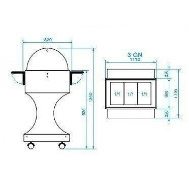 - Capacità n. 3 gastronorm 1/1 h 150.