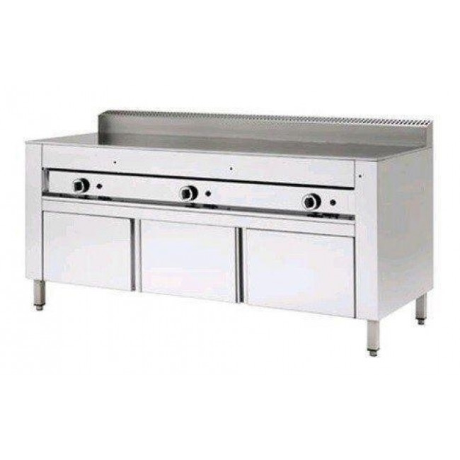 Piastra di cottura cromata satinata ad alto rendimento dovuto alle minori dispersioni per irragiamento, per la capacità di accumulare calore e per la sua semplicità nelle operazioni di pulizia.