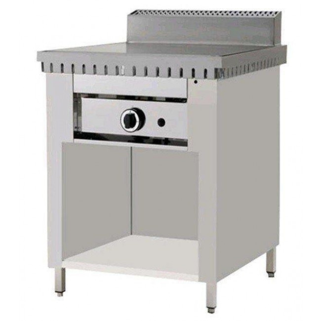 Piastra di cottura cromata satinata ad alto rendimento dovuto alle minori dispersioni per irragiamento, per la capacità di accumulare calore e per la sua semplicità nelle operazioni di pulizia. Piastra di cottura in acciaio speciale ad alta conducibilità termica.