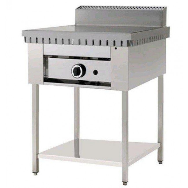 Piastra di cottura cromata satinata ad alto rendimento dovuto alle minori dispersioni per irragiamento, per la capacità di accumulare calore e per la sua semplicità nelle operazioni di pulizia. Bruciatore a fiamma autostabilizzante a più settori in base ai vari modelli, garantendo un’elevata uniformità nel riscaldamento e regolazione termostatica della temperatura con valvola di sicurezza e termocoppia.
