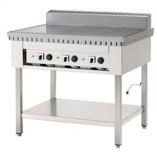 Piastra di cottura cromata satinata ad alto rendimento dovuto alle minori dispersioni per irragiamento, per la capacità di accumulare calore e per la sua semplicità nelle operazioni di pulizia.