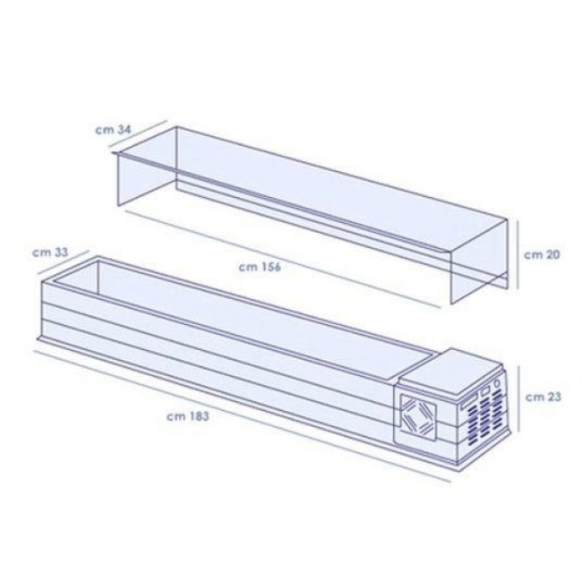 Vetrina refrigerata da tavolo per esposizione e conservazione di ingredienti per pizza, insalate e verdure, condimenti e salse, salumi e formaggi, antipasti misti e buffet freddi, frutta e macedonia, guarnizioni per gelato