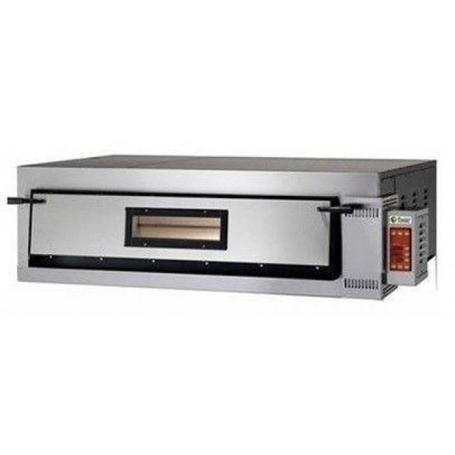 Ideali per la cottura di pizza, focacce, ecc. Rivestimento frontale inox con camera di cottura interamente refrattaria e pannello comandi digitale. Isolamento termico mediante rivestimento in lana di roccia con porte con vetro di ispezione in pirex e pirometri