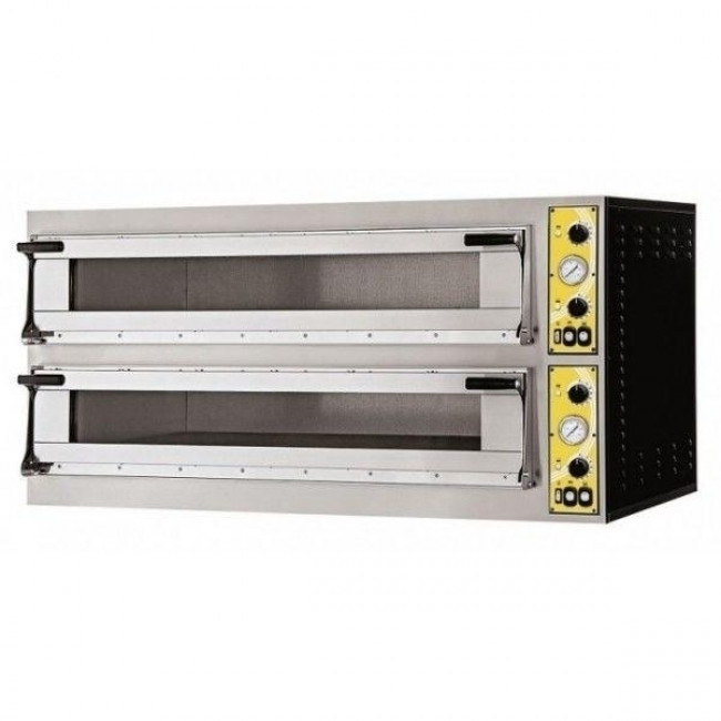 Forno Elettrico meccanico per pizza PF 2 camere di cottura N. Pizze 6 + 6(Ø cm 40) o N.3 + 3 Teglie in orizzontale 60X40 Modello MIZAR 66L GLASS