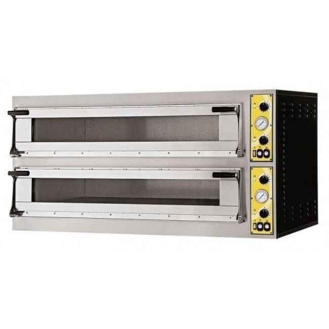Forno Elettrico meccanico per pizza PF 2 camere di cottura N. Pizze 9 + 9 (Ø cm 35) o N.5 + 5 Teglie 60X40 Modello MIZAR 99 GLASS