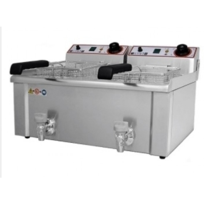 Friggitrice Elettrica Da banco con rubinetto Modello FBR9+9LT Potenza: KW 3.5+3.5 Monofase