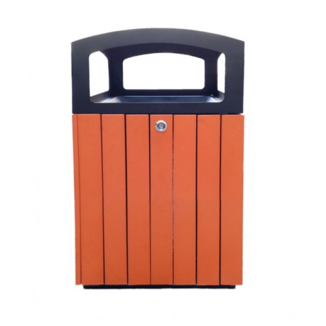 Struttura in acciaio trafilato a freddo e trattato con cataforesi. Doppio trattamento con verniciatura epossidica anti-ruggine e copertura laterale in polistirene resistente ai raggi UV. Secchio interno in acciaio galvanizzato con maniglie laterali e fondo perforato per facilitare il drenaggio dell’acqua
