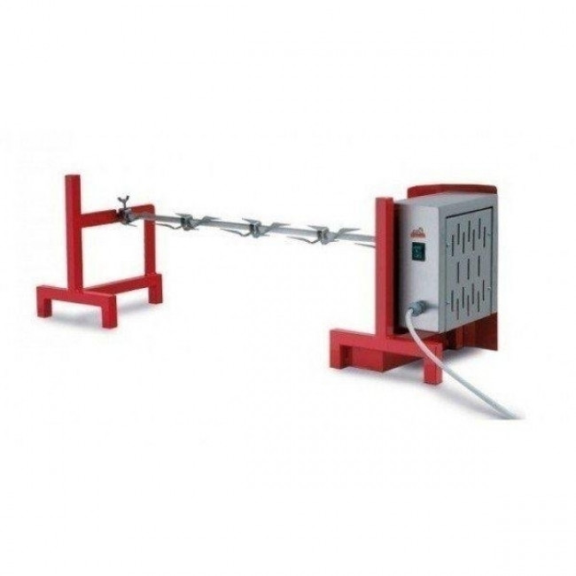 Estremamente pratico per ottenere una perfetta cottura tradizionale alla brace, consente un notevole risparmio del consumo di energia elettrica. Ha in dotazione spiedi per polli o cacciagione. Movimento rotatorio degli spiedi di tipo planetario, cioè sul proprio asse, oltre alla rotazione circolare.