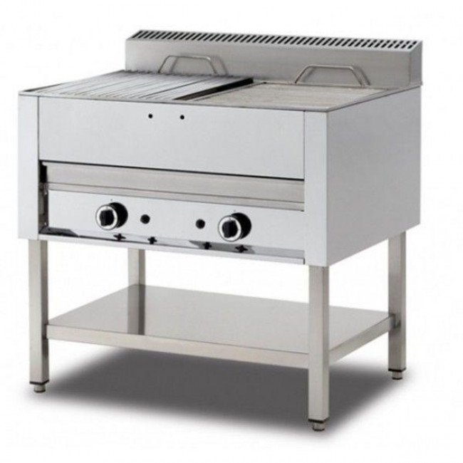 Con griglia cottura a canalette per raccogliere il grasso in un contenitore apposito.