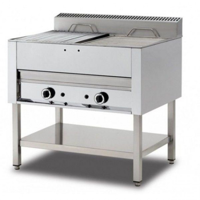 Struttura esterna in acciaio inox, i vari modelli si possono avere a fiamma diretta su parafiamma inox oppure a pietra lavica con griglia cottura a canalette per raccogliere il grasso in un contenitore apposito. Bruciatori a fiamma autostabilizzante a più settori in base ai vari modelli garantisconoun’elevata uniformità di cottura.