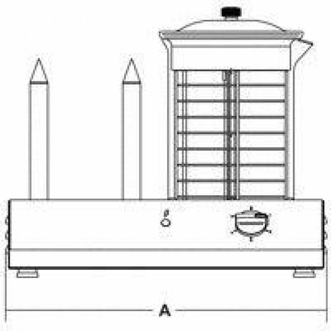 Contenitore in pirex per la cottura del wurstel e cesto di contenimento wurstel in acciaio inox. Regolazione della potenza con simostato e componenti elettrici auto-protetti da eventuali perdite di liquidi.