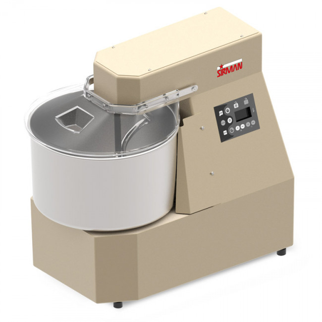 Struttura in acciaio C40 a grosso spessore con verniciatura antigraffio a polveri epossidiche alimentare e vasca con bordo rinforzato e asta rompi pasta in acciaio AISI 304.Spirale forgiata e coperchio vasca conforme alle normative con foro per aggiunta prodotto in lavorazione.