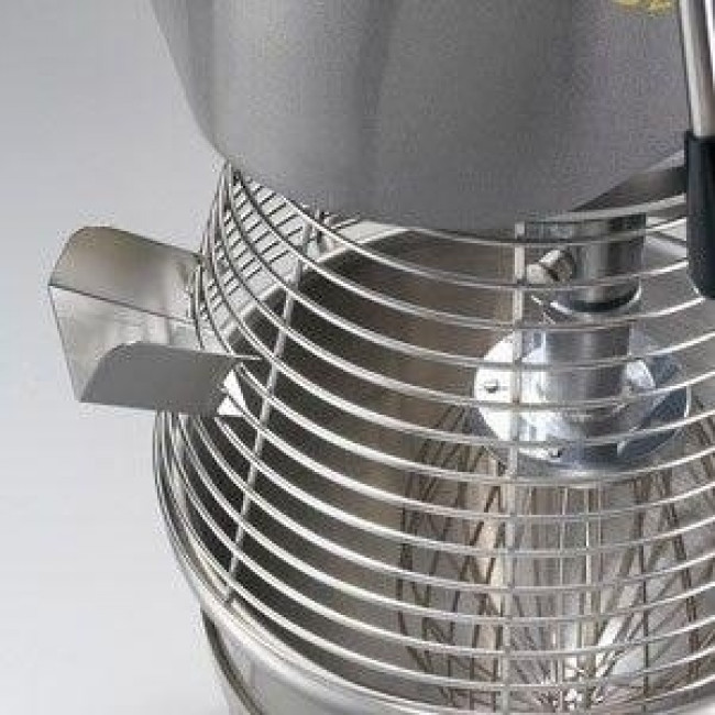 Solida struttura in fusione verniciata con protezione della vasca in filo metallico e vasca in acciaio inox 304 facilmente smontabile. Dispositivo di sicurezza all'apertura della protezione e abbassando la vasca