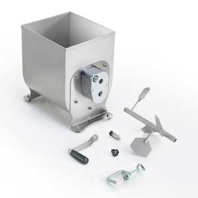 Costruzione in acciaio inox Aisi 304, pratica e compatta, ideale per piccoli impasti, sia in macelleria che ristorazione. Riduttore con ingranaggi temprati e rettificati. Sistema di protezione ingranaggi con doppio paraolio. Pala in acciaio inox Aisi 304 facilmente rimovibile senza attrezzi.
