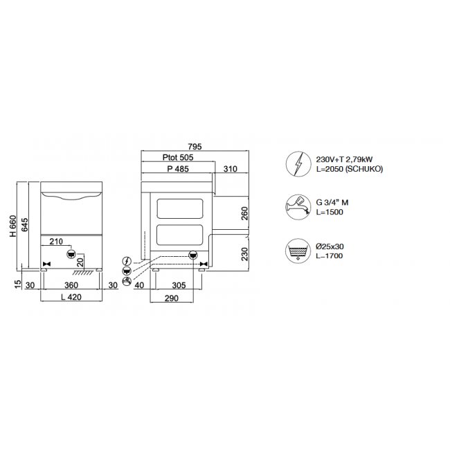 - Dimensioni - (mm) L - P - H 420x485x660h