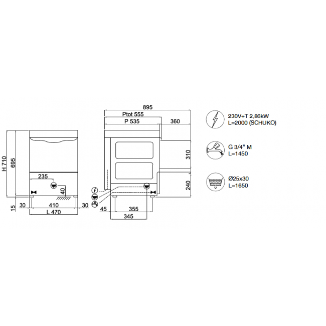 - Dimensioni - (mm) L - P - H 470x535x710h