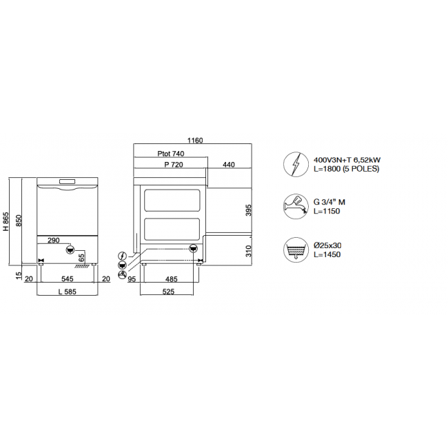 Il controllo elettronico permette di gestire vari parametri per darvi un grande livello di personalizzazione in base alle vostre esigenze mentre l’autodiagnosi consente di ridurre al minimo i fermi-macchina suggerendovi già alcune semplici operazioni da eseguire per risolvere la situazione. Il ciclo di autopulizia a fine giornata permette di pulire la vasca di lavaggio e di svuotare il boiler dall’acqua calda, prevenendo quindi le formazioni calcaree al suo interno. Grazie alla funzione Termostop lavaggio e risciacquo iniziano esclusivamente una volta raggiunta la temperatura desiderata. Il doppio dosatore di detergente e brillantante elettrico peristaltico installato di serie garantisce il massimo risultato da ogni ciclo di lavaggio con un grande risparmio dovuto al dosaggio preciso gestito dalla scheda elettronica; le giranti di lavaggio e risciacquo stampate invece assicurano una grande affidabilità e durata nel tempo. La carrozzeria è integralmente in acciaio AISI 304 ed è stata studiata con tutti i componenti nella parte frontale per permettere una facile assistenza da parte del tecnico.