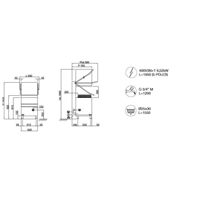 - Dimensioni - (mm) L - P - H 620x770x1435/1900h