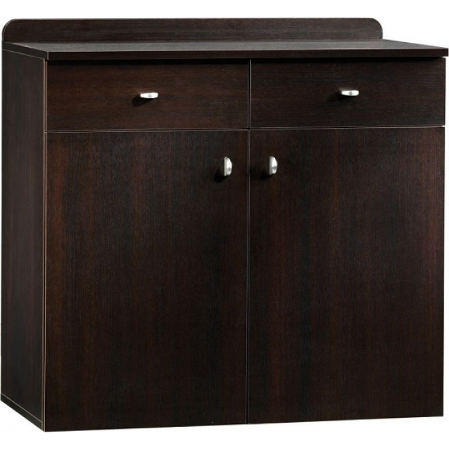 Struttura impiallicciata di Wengè, due cassetti portaposate, due sportelli.