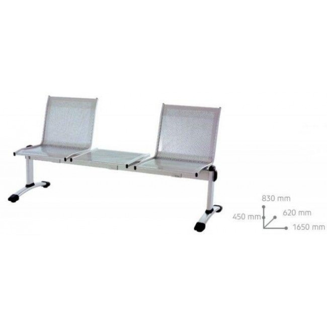 Ideale per sale d'attesa, aeroporti, stazioni, centri commerciali, locali pubblici, uffici, ospedali, musei Struttura portante in acciaio elettrosaldato con seduta e tavolo in acciaio microforato.