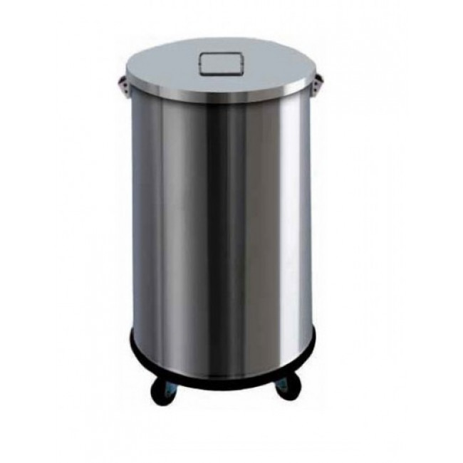 Struttura a forma cilindrica in acciaio inox, completo di coperchio stampato, ruote piroettanti.