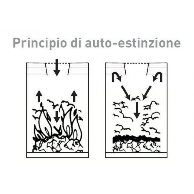 Gettacarte con coperchio autoestinguente, antifuoco con testa soffocante che blocca la propagazione del fuoco, costruito in metallo verniciato con polveri epossidiche colore nero