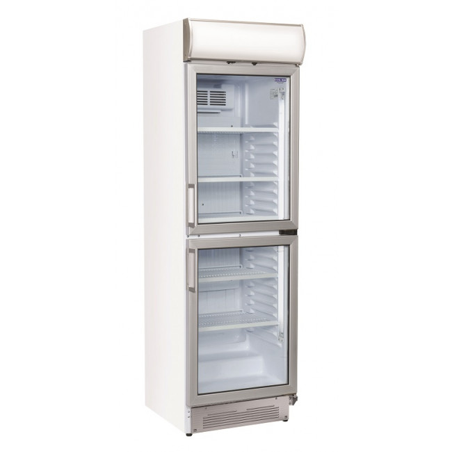 Isolamento senza CFC, 40 mm di spessore per lato con evaporatore roll-bond con ventilatore interno e sbrinamento a fermata compressore. Guarnizione della porta riposizionabile con operatività completamente automatica