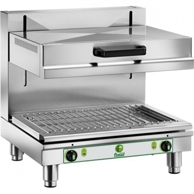 Struttura Prodotto completamente in acciaio inox, griglia cromata e cassetto raccolta residui di cottura removibili e termostati regolazione potenza