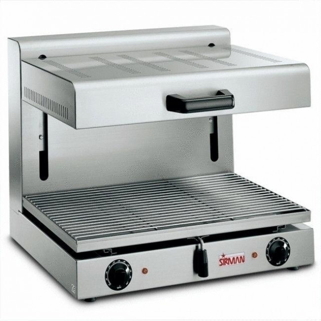 Carcassa in acciaio inox. con corpo riscaldante regolabile in altezza e cassetto raccogli briciole facilmente estraibile. Griglia di cottura in acciaio cromato e resistenze corazzate.