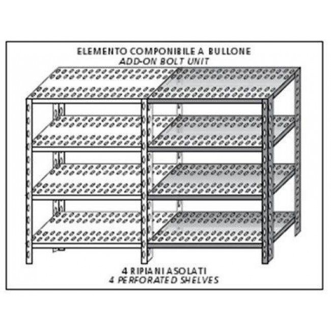 Scaffali inox a bullone IXP 4 ripiani forati Elemento componibile Da aggiungere ad elemento già esistente NON UTILIZZABILE DA SOLO Finitura lucida Modello SC320FC