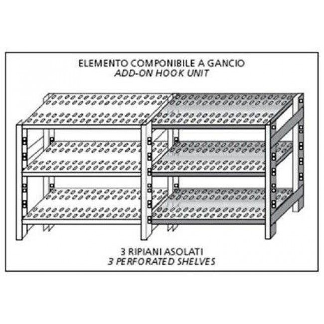 Scaffali inox a gancio IXP 3 ripiani forati Elemento componibile Da aggiungere ad elemento già esistente NON UTILIZZABILE DA SOLO Finitura lucida Modello SC315FCG