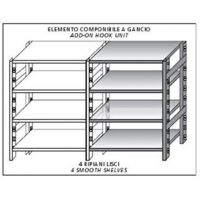 Scaffali inox a gancio IXP 4 ripiani lisci Elemento componibile Da aggiungere ad elemento già esistente NON UTILIZZABILE DA SOLO Finitura lucida Modello SC318LCG