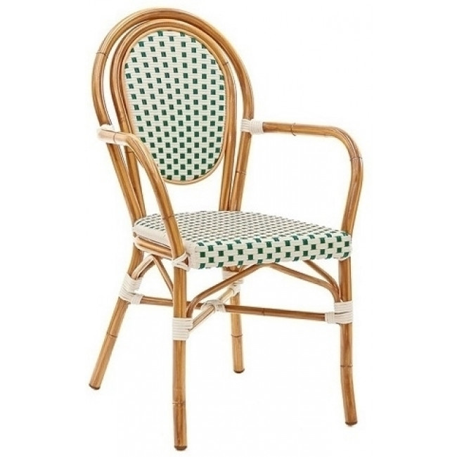 Sedia da esterno impilabile TESR Struttura in alluminio verniciato bambù, rivestimento in filo di nylon Modello 063AM09