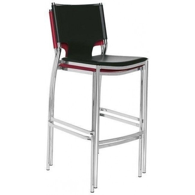 Sgabello impilabile da interno TESR Struttura in acciaio cromato Seduta e schienale in ecopelle Modello 838-C4063