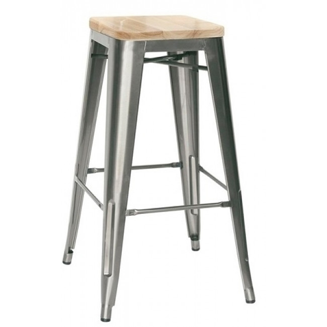 Sgabello impilabile da interno TESR Struttura in metallo verniciato e vernice trasparente Seduta in legno Modello 1067-MC012TW