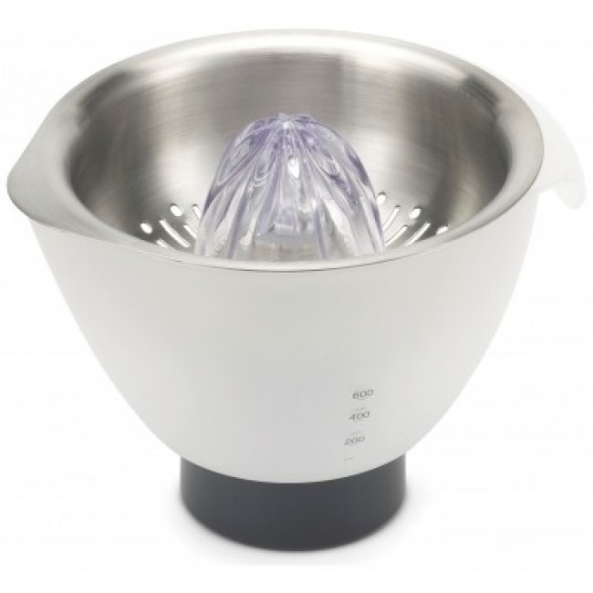 Spremiagrimi estraibile composto da pigna, setaccio inox, per separare i semi e raccoglitore graduato del succo.