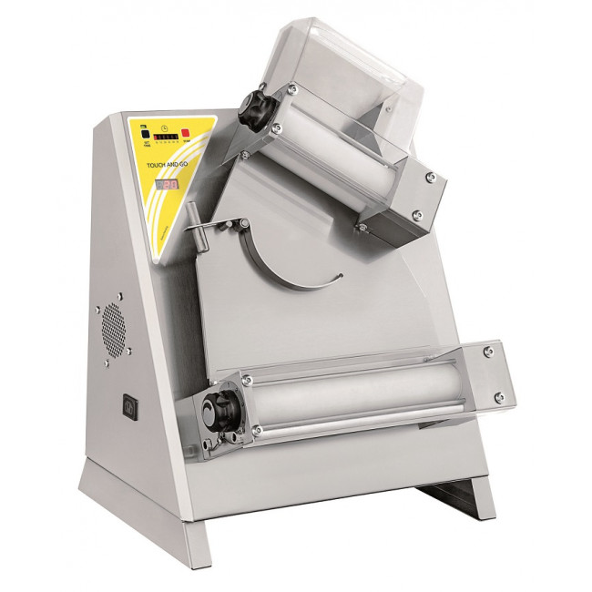 TOUCH AND GO unica nel suo genere è una dilaminatrice ad avviamento automatico con sensori. È sufficiente avvicinare una pallina di pasta allo scivolo superiore e grazie a dei sensori i rulli si avvieranno automaticamente e la dilaminatrice inizierà a funzionare. È possibile impostare il tempo di lavoro da 10 a 35 secondi con il tasto “TIME SET”, e la macchina si fermerà automaticamente al termine del tempo precedentemente impostato.