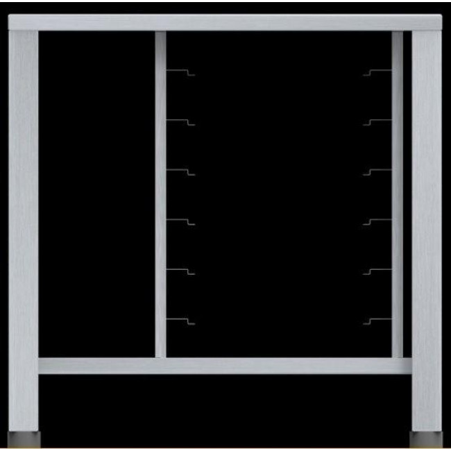 Tavolo Fisso in aisi 430 con supporti universali Modello ETS411 Capacità: 6 teglie 1/1 GN, vassoi e griglie 600x400 mm LxPxH 785x670x791 mm Per EF 311, EF 364, EF 411 ed EF 464 (in tutte le versioni escluso Touch Line)